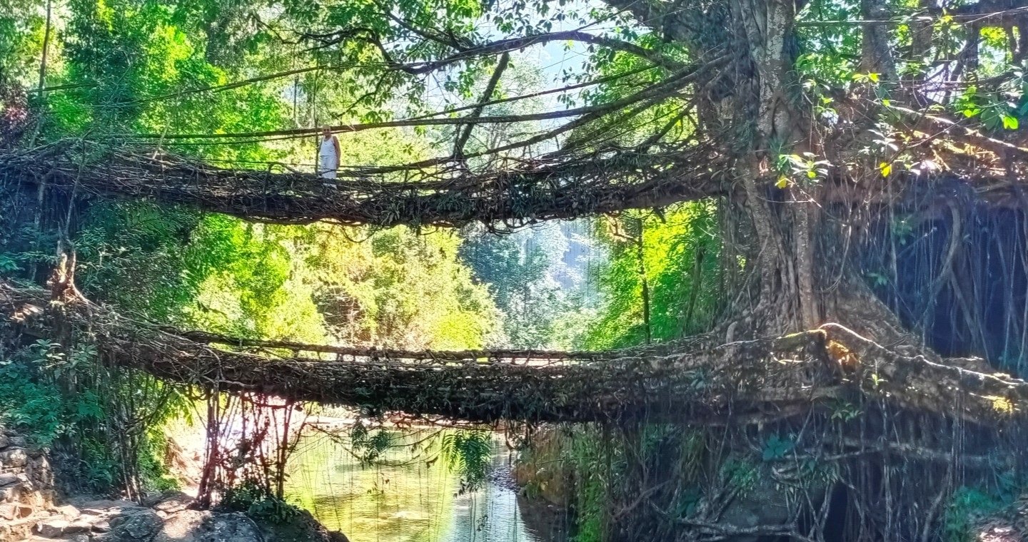Walk on the extraordinary Living Root Bridges in Cherrapunji and Nongriat, crafted over centuries by the Khasi people.